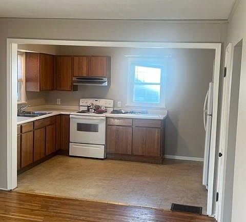 Cute 3 bed house with backyard views of Bear Creek. Fresh paint and vinyl laminate flooring throughout. Open main floor living - kitchen area with two bedrooms on main level and one upstairs. Convenient close in location. Full unfinished basement just painted, lots of storage. Washer dryer hookups provided. No smoking indoors. Owner pays trash. Resident pays gas, electric, water & sewer. Resident responsible for keeping lawn mowed and shoveling sidewalk and driveway. Cats and small dogs under 20 lbs allowed with non-refundable deposit. $25 application fee per adult