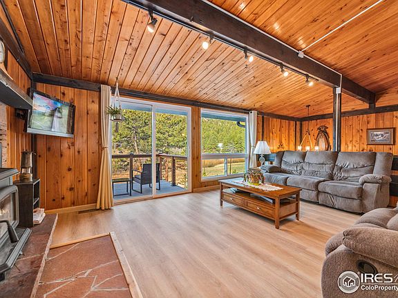 Wake up to the quiet hum of nature, take your morning coffee out on the balcony, and watch the sun light up the meadow below. This 4-bedroom, 2-bath mountain home sits on a rare double lot in the heart of Big Elk Meadows-offering open views, incredible privacy, and a peaceful, intentional way of living.The main floor welcomes you with an open kitchen, dining, and living space where light pours in and windows frame the surrounding landscape. A cozy indoor atrium just off the living area gives you a place to grow fresh herbs, nurture your lemon tree, or simply enjoy a slice of green space all year long.Two bedrooms and a full bath are located on the main level-one with its own private balcony and double closets. Downstairs, you'll find two additional bedrooms, a full bath, and a separate living area with a bar and its own entrance-ideal for visiting friends, extended stays, or creative work-from-home setups.In the winter, curl up by one of three wood-burning fireplaces while the snow falls quietly outside. When the weather warms, take in the mountain air from one of the balconies, perfect for reading, relaxing, or watching the local wildlife pass through the yard. The fenced backyard offers privacy and a safe space for pets. Owned solar panels help keep energy bills low, and recent updates throughout the home mean you can settle in without a long to-do list.Life in Big Elk Meadows is about slowing down, connecting with nature, and being part of a true mountain community. Residents enjoy access to private lakes, trails, tennis courts, and the kind of solitude that's hard to find-just a short drive from Estes Park or Lyons.