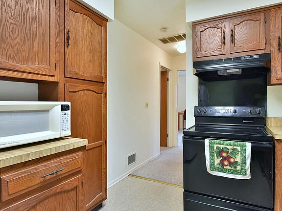- Kitchen with cooking range, oven, dishwasher and full size refrigerator