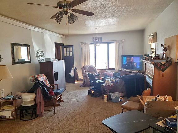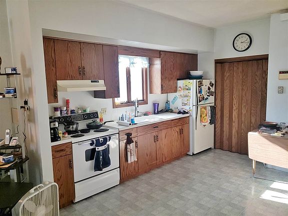 Great Starter Home! Come check out this unique 4 bedroom, 1 bath home! Eat in kitchen includes stove and fridge, and laundry area is conveniently located just off to the side. 2 bedrooms and 3/4 bath with walk-in shower are also on the main level. Carpeted living room has propane fireplace (not hooked up) and wall air unit. Enclosed front entry is finished and heated. Back entry/bonus room can be used for an office or hobby room, and opens to backyard wood deck. Upper level has extra storage including attic storage, and 2 more bedrooms with window benches. Single detached garage has opener. Yard is partially fenced, includes shed and has alley access. Shingles on the house are approximately 1 years old. Other amenities include breakers, newer water heater, and electric baseboard heat. Basement is unfinished and used for storage.