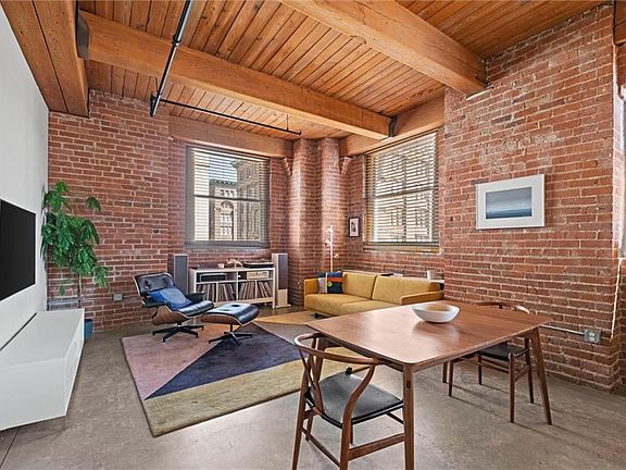 Inside, walls of natural light pour through expansive windows, highlighting exposed brick and soaring timber ceilings that define true loft character. Recent updates add comfort and peace of mind: fresh paint, a brand-new water heater, and in-unit washer/dryer. The intentional open layout enhances flow and volume, creating the perfect canvas for entertaining or relaxing.