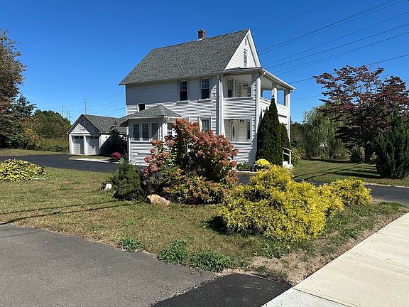 Welcome to 712 Cooper Street—a beautifully updated farmhouse on a scenic 1.98-acre lot, just steps from Agawam High School, the library, and other local amenities. Surrounded by mature trees and lush landscaping, this home offers a detached two-car garage, a charming front porch, and a second-floor balcony. Inside, the open-concept layout features a spacious living and dining area that flows into a stunning kitchen with an oversized island, granite countertops, updated cabinets, and stainless-steel appliances. A full bath completes the first floor. Upstairs, you'll find the primary suite and a second bedroom with access to the balcony. The finished attic serves as a third bedroom or bonus space. Recent upgrades include refinished hardwood floors, renovated kitchen and baths, gas-converted forced air heat, central air, and a tankless hot water system. This move-in-ready home blends character, comfort, and convenience—don’t miss it!