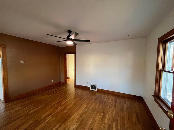 This charming home features 3 bedrooms, 2 bathrooms, a dedicated office, and a family room, offering a perfect blend of character and functionality. Original hardwood floors flow throughout the main level and upstairs, adding warmth and timeless appeal. The main floor includes a spacious living area, a bright kitchen/dining combination, and a cozy bedroom with a full bathroom. The laundry area is generously sized and offers potential for a home office or study space. Upstairs, you'll find a large primary bedroom with a walk-in closet, a third bedroom, and an additional space that can be used as a family room. The basement provides ample storage, ideal for seasonal items or extra organization. A custom-built den area features a stunning electric fireplace, a beautifully carved wood mantel, a bookcase, and a unique map of the USA, creating a perfect spot to unwind. Outside, the single-car detached garage (12 x 20) offers additional space for parking, storage, or a workshop. Located in the heart of town, this home is within walking distance to shopping, downtown, and a City Go bus stop for easy access around Salina. The backyard is a true standout, with landscaped pathways, a brick patio, and a thriving garden that flourishes in the beautiful fall weather. Don't miss the opportunity to make this home your own!