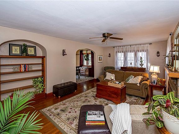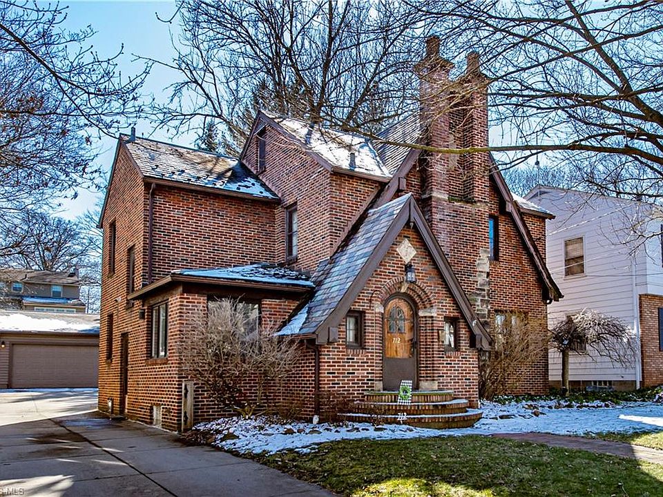 You'll find charm galore in this well-maintained, West Akron, brick Tudor home. Enter thru one of many arched doorways into spacious living room with wood-burning fireplace, built-in shelving. Original lead glass windows let in natural light. Dining room opens to kitchen, living room for easy entertaining, and has sliding doors to private, fenced backyard with paver patio. Gorgeous hardwood floors span entire 1st floor, including eat-in kitchen with updated cabinets with pullouts, breakfast nook. All appliances remain including gas cooktop. Enclosed sun porch has many possibilities - home office, playroom, or relaxing with a good book. Convenient 1/2 bath on main floor. 2nd floor features master bedroom with his/her closets, hardwood floors, and built-in jewelry cabinet; 2 guest bedrooms and full bath. Yes, there's a laundry chute! 4th bedroom on the 3rd floor with newer carpet, lots of storage and built-ins. Slate roof and wide woodwork trim add so much character to the home. Newer (2005) 2-car garage has plenty of extra room for bikes, lawnmower, toys. Finished basement features rec room, laundry area, huge storage pantry, tool room, glass block windows. Basement waterproofed (2019) with a lifetime transferable warranty. 100 amp main and 100 amp electrical sub panel. New boiler in 2016, HWT 2012. Desirable location minutes to Merriman Valley, Metroparks, hiking and biking trails, schools, shopping. Walking distance to Highland Square amenities, dining and entertainment.