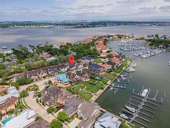 An Exclusive Waterfront Development, Waterford Harbor offers Luxury Living with 24-hour manned-gate security, access to the neighborhood marina & community pool within walking distance. Residents enjoy ultimate coastal living minutes from Clear Lake, Galveston Bay & Kemah Boardwalk. Rare opportunity to own a custom-built home complete with Generac generator + W/D/F! Exceptional 4/2.2 versatile 1.5-story open-concept living features a home-office, formal dining, family room & breakfast area (1 bedroom up is ideal for gameroom, 2nd office or workout room). The home is adored w/ Plantation shutters, wood floors & crown molding. Remodeled Kitchen features gorgeous Quartzite countertops, under/over cabinet lighting & upscale appliances. Updated Primary bathroom is stunning! Laundry room features a 2nd sink, folding table, storage & more. Walk outside to the private patio with shaded area, colorful shrubbery, landscape lighting & professionally installed pavers/walkways. See list of updates.