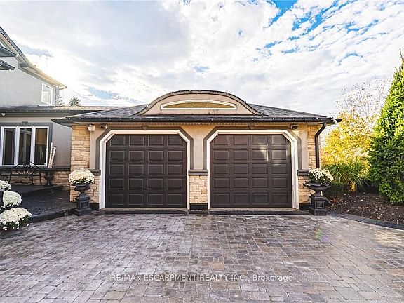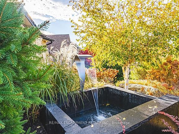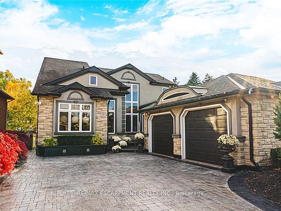 Unique, custom-built luxury home in the highly sought-after Ancaster Heights neighbourhood. Attention to detail & fine construction throughout, this home offers elegance, comfort, & functionality. Step into the grand sitting area, featuring soaring ceilings, stunning windows, & an impressive open staircase that connects all levels of the home. Sunken dining room boasts coffered gold leafing ceilings for refined entertaining. Custom Built Downsview kitchen offers abundant cabinetry, granite countertops, & top-of-the-line stainless steel appliances, including a Sub-Zero refrigerator, Wolf gas range, Gaggenau built-in oven, Miele dishwasher, & microwave storage. Relax or entertain in the expansive great room, featuring dramatic ceiling heights & a backlit onyx walls for your tv. An open-concept office with natural light, perfect workspace. Main-floor laundry room includes garage access. Upstairs, the spacious primary suite offers a large walk-in closet & a renovated 5-piece ensuite (2025). Two generous bedrooms share a beautifully appointed 4-piece bathroom, & a bright loft area overlooks both the front & rear of the home. The lower level features large windows & offers in-law suite potential with separate walk-ups to both the rear yard & garage. Cozy recreation room with fireplace, a fully equipped gym, a sauna for relaxation, 3 pc bath (2025), workshop, cold room, & plenty of storage space. The outdoor oasis includes a composite deck with built-in BBQ, hot tub, & an oversized waterfall feature with fireplace, artificial turf & a storage shed. Additional highlights include an oversized 2-car garage with abundant storage & a long interlock driveway accommodating up to 8 vehicles & irrigation system. Trillium award several years for landscaping. Ideally located near Tiffany Falls, Tamahaac Club, Highway 403, the Linc, Costco, schools, parks, & trails, luxury living with convenience & lifestyle.