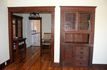 Large 1 bdr, 1 ba main house with rear bonus room/cottage. Fully-restored original kitchen with tile, granite, sink, dishwasher, garbage disposal, refrigerator, gas stove. Bath features clawfoot tub, pedestal sink, top quality designer hardware, hex and metro ceramic tile. Original and restored cabinets throughout with artisan crafted etched and beveled glass. Refinished hardwood floors in living and dining rooms, Douglas fir flooring in bedroom. Hardscaped with cedar fences, trellises, arbors, fieldstone, gas barbecue hookup. Washer and gas dryer hookups in cottage. Automatic sprinkler system. ADT Security System.