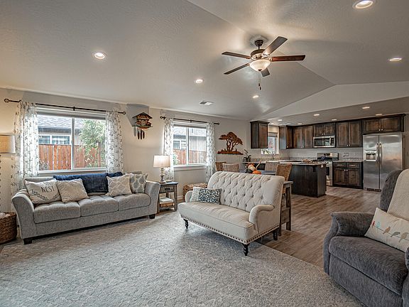 Welcome to this modern 4-bed, 2-bath, turn-key home in a peaceful Eagle Point neighborhood. Built in 2021, this home offers an open-concept layout with a bright living area and a stylish kitchen featuring a breakfast bar, stainless appliances, and ample counter space. Also included is a whole-house electronic air cleaner that effectively filters dust, pollen and smoke. The private primary suite includes a walk-in closet and a well-appointed bath. Three additional bedrooms provide flexibility for guests, work, or hobbies. With contemporary finishes, energy-efficient systems, and a clean, move-in-ready feel, this home offers easy living and comfort close to schools, parks, and local conveniences and just 20 minutes to Medford.