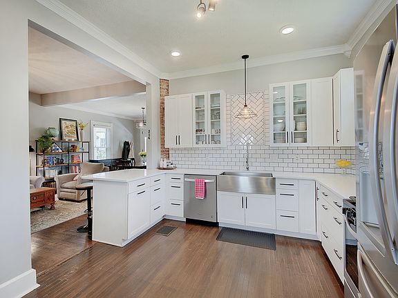You'll appreciate this impeccably updated, 2-bed 2.5 bath home in the Heart of Bates-Hendicks. Home features a perfect blend of historical charm with modern updates throughout. Upon entering, you will be greeted by the high ceilings, original hardwoods, and natural light flooding through the new windows. The updated kitchen is a true showstopper with beautiful cabinetry, stainless steel appliances, granite countertops, farmhouse-style sink, gas range with hood, eat-in breakfast bar counter, making this kitchen a chef's dream! The spacious primary bedroom features a luxurious en-suite bath, complete with a beautifully tiled, large walk-in shower, designer-style fixtures, a double sink vanity, high-end lighting, and a well-curated tiled floor to complete the look. The second full bath boasts the timeless elegance of a clawfoot tub. Outside, enjoy the charming front porch or your fully fenced-in backyard oasis that features a porch perfect for relaxing and entertaining. Close to Fountain Square, downtown, and the interstate for an easy commute. The unfinished basement is perfect for extra storage and a one-car detached garage. Washer/Dryer included!