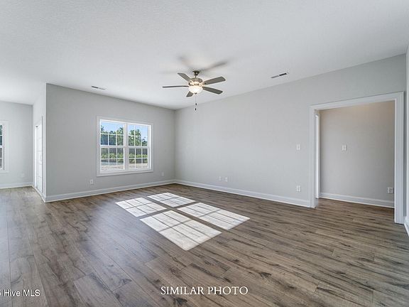 Welcome to the highly desired & popular community of Onslow Bay. Brand new construction built by Onslow County's most trusted & preferred builder. Onslow Bay is a hot spot, 3 miles to MCB Camp Lejeune's Piney Green gate, 14 miles to New River Air Station & minutes to area schools, shopping & dining. This beautiful neighborhood is sure to impress, complete with a clubhouse area & community pool. Welcome to the Shiloh - an inviting and well-designed single-level home offering approximately 1,727 heated square feet, featuring 4 bedrooms and 2 bathrooms. Step inside to a spacious, open-concept layout that provides a natural flow from the living area to the kitchen and dining space—perfect for both everyday living and entertaining. The kitchen includes ample counter space, functional design elements, and plenty of room to gather. The primary suite is thoughtfully placed for privacy and comfort, featuring a sizable walk-in closet and an en-suite bathroom with modern finishes. Three additional bedrooms offer versatility for guests, remote work, or hobbies. With its balanced layout, comfortable design, and timeless appeal, the Shiloh floor plan offers flexibility to suit a variety of lifestyles. Come see how this home can meet your needs; both now and in the future. NOTE: Floor plan renderings are similar and solely representational. Measurements, elevations, and specs may vary in final construction. Limited selections for buyer to choose. Call L/A to verify.