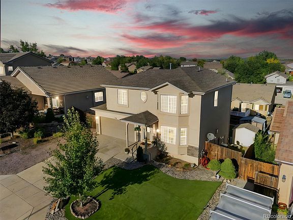 If you have been searching for a move-in-ready 4 Bedroom Home with a showstopper backyard lot exuding tranquility in every nook … your search is over! This meticulously cared for two-story gem is nestled in the community of Wild Oak Farms (NO HOA)- with RV Parking on the side of the fully fenced tiered backyard. NEW ROOF TO BE INSTALLED PRIOR TO CLOSING (buyer’s color choice). Entering this stucco home from the covered porch, you step in to the Living Room complete with gas fireplace & large bay window teeming with natural light. Adjoining this space with wood laminate flooring beneath is the dining room, powder bath for guests, & walkout to the 14’ deck. The updated Kitchen features a large island, abundant white cabinetry, & sleek SS appliances. This kitchen is perfect for culinary adventures & entertaining, as it seamlessly connects to the dining & living areas in an open concept. The upper level boasts your own personal retreat in the expansive Primary Suite Bedroom. Featuring vaulted ceilings, oversized bay windows, & walk-in closet this space naturally flows into the en suite 5pc Primary Bathroom. Two additional spacious bedrooms, full bathroom, & upper-level laundry (washer & dryer included) complete the second floor. The fully finished basement boasts a Family Room with built-in speakers, gas fireplace, & conveniently offers a private entrance to the backyard. The fourth bedroom & full bathroom complete the basement level for guest suite privacy. BONUS! The spacious landscaped backyard features a concrete patio, terraced garden beds, two storage sheds, & mature landscaping in this serene outdoor living space- perfect for grilling or firepit conversations under the Colorado night stars! 2 Car Garage, central air, ceiling fans, fully landscaped front/back yards, & sprinkler system included! Conveniently located off the Powers Corridor along close to military installations, Parks & Schools, Shopping, Entertainment, & So Much More!