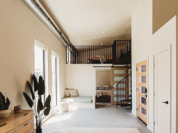 The main floor features a king Bed. The upper loft floor features a queen bed and the living room areas features 2 custom built in full size pull out beds.