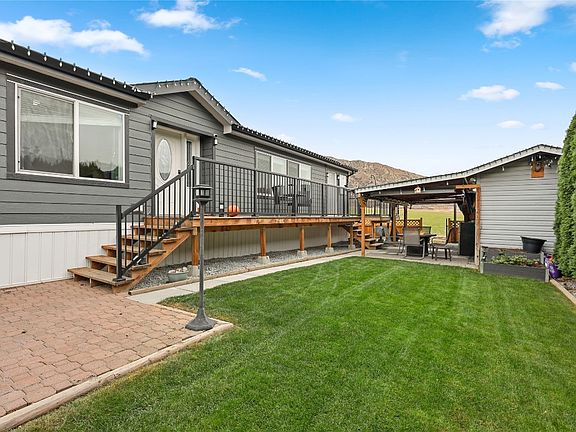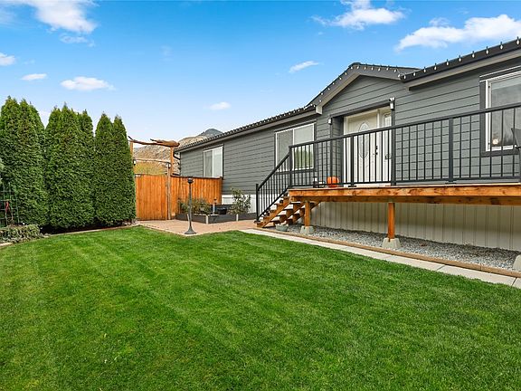 This amazing home was built in 2015 and is located in the desirable complex of South Bend Estates, within walking distance to hiking trails/paths and is just minutes from downtown Kamloops! Perfect for first time home buyers or for those who are looking to downsize. Featuring 1,624 sq ft of indoor living space, an open floor-plan with vaulted ceilings, 3 large Bedrooms all with walk-in closets and 2 full bathrooms which includes the huge 5pc master ensuite with soaker tub! The spacious kitchen offers a pantry, an island, and is open to the large dining area and living room with access to the covered/enclosed patio! The yard is fully fenced and very private with cedars, and raised garden boxes, wrap around deck, and covered sitting area! Other features include workshop/shed, C/Air, and Lots of Parking, Pets allowed with restrictions. New Hot water tank. No rentals allowed. Pad rent of $450/mo includes water, sewer, garbage, and snow removal. Measurements are pulled from MHR.