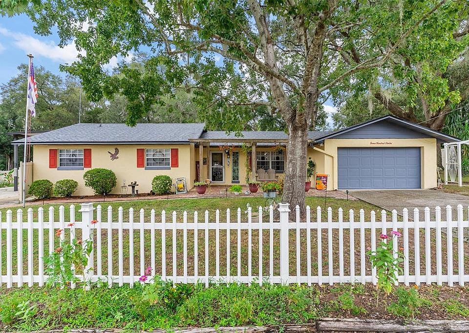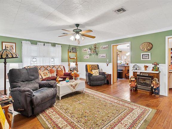 This property truly has it all – Pool, Workshop, RV Port, and Abundant Storage! Beautifully maintained 3-bedroom, 2.5-bath home with a new roof (2025) offers everything you’ve been looking for. The spacious eat-in island kitchen features custom wood cabinets with glass fronts, granite countertops, a farmhouse sink, travertine backsplash, gas range, sun tubes for natural light, a breakfast nook, and French doors leading to the pool area. The living and dining rooms showcase hardwood flooring, wainscoting, and crown molding for added charm. The master suite includes wood-laminate flooring, a walk-in closet, and a private bath with a new pedestal sink and tiled walk-in shower. Two comfortable guest bedrooms share a second bath with a tiled tub/shower. Step outside to a 43x27 screened pool and patio with a convenient half bath (easily convertible to a full bath) and a welcoming 20x14 brick-paver front porch. An attached 2-car garage complements the fully fenced property with PVC fencing, entry gate, and backyard water feature. Next to the main home sits a 29x16 climate-controlled workshop with a kitchenette and upper loft (ideal for a guest suite or in-law space). Attached to the workshop is a 30x16 RV port with sewer, water, and electric hookups, a 29x10 covered porch, a 16x15 covered storage area, and a 20x7 storage building, perfect for hobbies, guests, or extra storage.