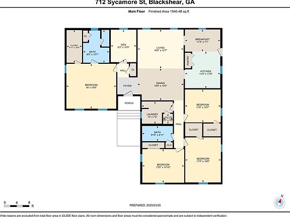 Welcome to 712 Sycamore St in Blackshear - here's a nicely updated 4 bedroom, 2 bath home with an additional flex room, perfect for a nursery, playroom, workout space or craft room. Spacious living room with dining area option. Kitchen offers plenty of cabinet space, a pantry, and appliances, including an oven/range, dishwasher and microwave. Enjoy casual dining in the breakfast area. The spacious master bedroom boasts a walk-in closet. Tiled master bath with a tub/shower combo and single sink with vanity area. The additional bedrooms are also generously sized, and the refreshed guest bath is tiled with tub/shower combo. Laundry room. This home has been renovated throughout, featuring new LVP flooring, updated light fixtures, refreshed bathrooms, updated windows and major upgrades include HVAC system and roof, ensuring long-term comfort and efficiency. Lots of concrete driveway to provide lots of parking. Home is situated on large lot and features a privacy wood fence between neighbor. Don't miss out on this move-in-ready home - schedule your showing today!!!
