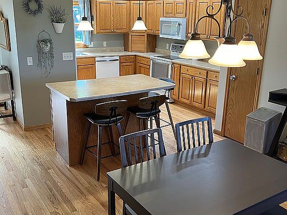 Very nice 5 bedroom, 3 bath home with river view. Over 2,532 total square feet with 1,576 of that on the main level. A 1,200 square foot cedar deck with maintenance free railing wraps around the back of the home – the perfect place to take in the view of the Missouri River, LaFramboise Island, the Capitol dome and the lights of Pierre! The .4 acre yard has a sprinkler system which includes drip lines to the plants in the front of the home. Attached double car garage: 24 x 30 with an 8 x 16 overhead door and an 8 x 10 overhead door to drive through to the back of the lot. An additional detached garage is 20 x 24 with 12 foot side walls and a 10 x 16 overhead door. This home offers an open living, dining and kitchen area. Lots of storage and counter space in the kitchen. Beautiful hardwood floors. The primary suite has a walk-in closet and large bathroom with a walk-in shower and a jetted tub. The primary suite also has sliding glass doors that open to the back deck. There are 2 other bedrooms and a guest bath on the main floor. The lower level has 2 more bedrooms, a full bath with a new vanity and toilet, a nice family room and a large laundry room. Home has an on demand water heater. The deck and kitchen appliances were new in 2017, furnace/AC new in 2018. New roof on house and both garages in 2023. New kitchen lights, as well as new light fixtures in the laundry area, garage, furnace room and back deck in 2024.