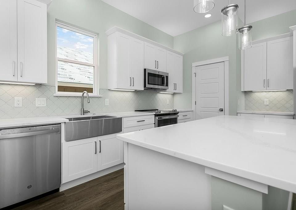This charming, brand-new home is move-in ready w/ a split floor plan & open living space, perfect for families or entertaining! It boasts high ceilings, smart home technology, & modern amenities such as upper & under cabinet lighting, SS appliances, tile backsplashes, solid wood cabinets w/ soft close, & quartz countertops. Additionally, the home includes energy-efficient features like spray foam insulation, limestone & Smart Siding exterior, as well as gutters, a landscaped yard w/ irrigation, a 15x7 covered back patio, a privacy fenced backyard!