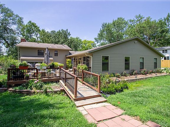 Mid-century with a twist of modern. Spacious add-on includes a large great room with vaulted ceilings. The spacious primary suite has vaulted ceilings and a large ensuite bath, including a tub, separate shower, cedar closet, and 2 additional closets. 6 panel doors throughout show quality construction. This home offers 4 bedrooms and 4 bath areas in 3697 sq ft. An abundance of storage with a finished basement and fireplace with insert. Hardwood floors throughout all upper levels. A large deck off the east side of the home and a sizeable custom-built storage shed. All sitting on a 12,500 sq foot lot with mature trees and a fenced backyard. Very nicely landscaped with lots of flowers and plantings. Sunset Hills schools. Includes Home Warranty. Don't miss this beauty!