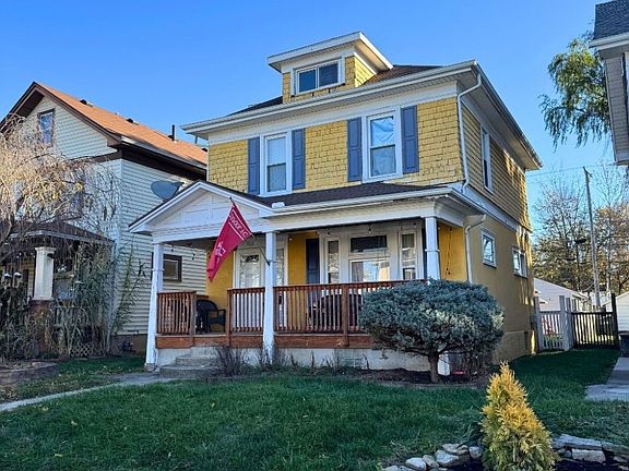 Welcome to this charming and spacious home located in the beautiful Linden Heights neighborhood. This two-story home offers modern conveniences while maintaining the vintage character of the home. The first floor features an updated kitchen, breakfast nook, a large living room open to the formal dining room (currently being used as a play space by the current owners), hardwood floors, crown molding, and beautiful stained glass windows. Upstairs has a large, updated bathroom and three bedrooms which all feature gorgeous hardwood floors. The home also has a full, unfinished basement with laundry space and lots of storage! Outside you will find a two-car detached garage, fully fenced backyard with a low maintenance yard, and a covered porch. Enjoy being minutes from the heart of Dayton, while also enjoying peaceful living on this quiet, one-way street and no direct rear neighbors!