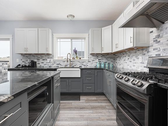 This gorgeous 4 bed/2.5 bath home in a friendly, well established neighborhood near Agate Beach has peeks of the ocean and is chock full of recent upgrades including a fully remodeled kitchen featuring stainless steel appliances, a gas stove with hood, all new cabinetry, granite countertops, and marble tile backsplash. The newly remodeled master bath features a jet tub, large walk in shower, and quartz countertops. New luxury vinyl plank flooring was installed throughout the home two years ago, along with new Trex deck patios and a new surface for the fireplace. In addition, the exterior of the home was painted three years ago. Pride of ownership really shines through with this home! The playground in the backyard is included but removal can be negotiated.