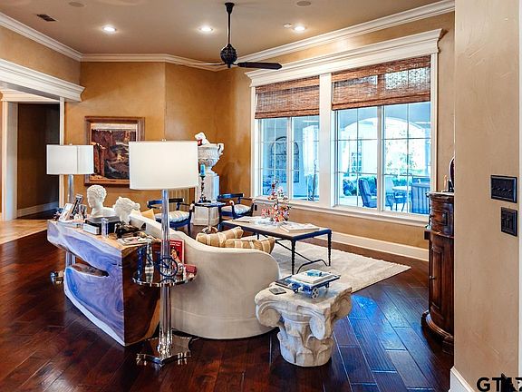 A masterpiece of Mediterranean design, this magnificent estate offers unparalleled luxury and privacy, sprawling across two premium lots totaling over an acre. From the grand circular drive to the portico and arched entryways, every detail exudes timeless elegance. Step inside to discover a thoughtfully designed floor plan perfect for both grand-scale entertaining and tranquil family living. The main level features two distinct living areas, a formal dining room for sophisticated gatherings, and a sun-drenched breakfast area for casual meals. The gourmet chef's kitchen is a showpiece, boasting professional-grade appliances, a massive central island, and custom cabinetry. Work from home in style with two dedicated private offices, providing ultimate flexibility. The serene owner's retreat is a true sanctuary, complete with a spa-like ensuite bath and two expansive walk-in closets. Three additional, generously sized guest bedrooms each feature their own private ensuite bathrooms, ensuring comfort for family and visitors alike. Adjacent to the kitchen the ultimate entertainment hub awaits in the game room, complete with a full wet bar. The luxury extends outdoors to a private resort-style oasis. An expansive covered living area features a full outdoor kitchen and a cozy fireplace, perfect for year-round enjoyment. The stunning heated pool and spa are accentuated by a dramatic fire feature and pergola, creating an unforgettable ambiance for evening swims. The vast, meticulously landscaped grounds provide a sense of seclusion and endless space for recreation. Complete with an oversized laundry room and a 3-car garage, this exceptional property is more than a home, it is a lifestyle.