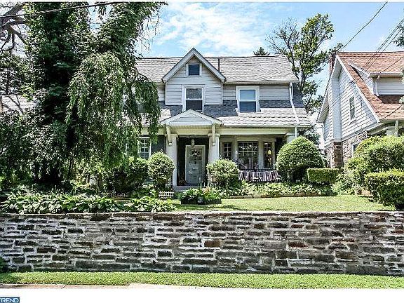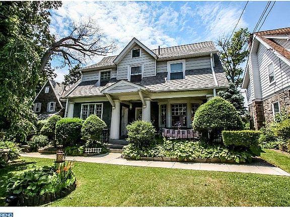 Looking for space? Convenience to public transportation? Charm? You found it! This center hall colonial boasts these plus much more. Spacious living room with wood burning fireplace, h/w floors, crown molding, formal dining room with corner cabinet, h/w floors & crown molding, den/office with built in bookcases, crown molding & separate entrance from front porch, eat in kitchen with maple cabinets & large pantry, full tiled bath. The second floor consists of 4 spacious bedrooms & full bath and access to walk up floored attic storage. Full semi finished basement with 1/4 bath, bar and storage cabinets. You'll enjoy your outside entertaining on your open front porch or rear patio & rear yard. One car detached garage with loft for extras storage, some replacement windows, new electric, newer heater, h/w floors Plus this home is protected by a one year home warranty