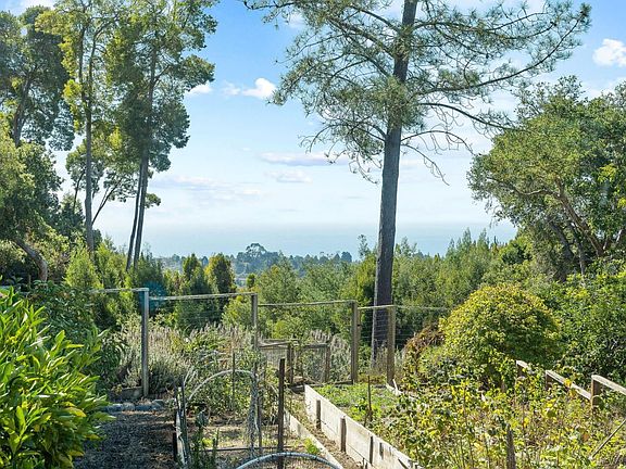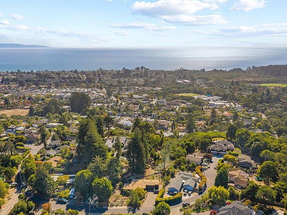 Amazing Coastal Ocean View Retreat Awaits! Up on a hilltop overlooking the beauty of the landscape & ocean beyond, this incredibly rare gem on a generous 1.3+/- acre lot offers 3 Bedrooms & Office and 2 Bathrooms. The primary suite, including a stylishly designed ensuite bathroom, was a recent addition w/permits. Relax with your morning coffee & gaze at the glimmering ocean views from the many large picture windows throughout this charming single level ranch style home. Work from home in private office. Entertain on the generous back deck. Garden to your heart's desire in the deer fenced raised-bed garden. Enjoy the many fruit trees, apple, pear, lemon and more. Close to New Brighton & Seacliff Beaches and many restaurants & amenities. Great commute location. Generous parking in front driveway and room for Boat/RV on the left side of home. 2 nice storage sheds. Deer fence by the garden does not reflect back or side property lines. Back property line is approx. to tree line below home.