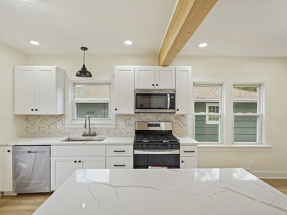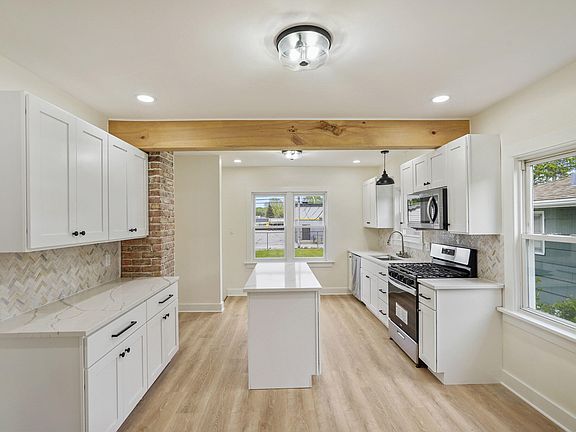 Just Listed! 7121 Magoun Ave, Hammond, IN -- This stunning Cape Cod-style home perfectly blends modern upgrades with timeless character! Featuring 4 bedrooms, 2 full bathrooms, and a spacious open-concept kitchen adorned with wood ceiling beams and exposed brick that adds warmth and charm. Enjoy brand-new stainless steel appliances, quartz countertops, custom cabinets, and stylish lighting.Upgrades continue throughout with luxury vinyl flooring on the main level, carpet upstairs, and tiled showers in both full bathrooms. You'll love the new ceiling fans, NEW roof, electrical, an upgraded 200 Amp electrical panel, plumbing, and more! The 2.5-car garage, long driveway, and generous backyard offer plenty of space for parking and entertaining.Located near Purdue University Northwest, schools, shopping and the expressway, this fully renovated home is move-in ready and made for modern living!Don't miss your chance--schedule a tour today!