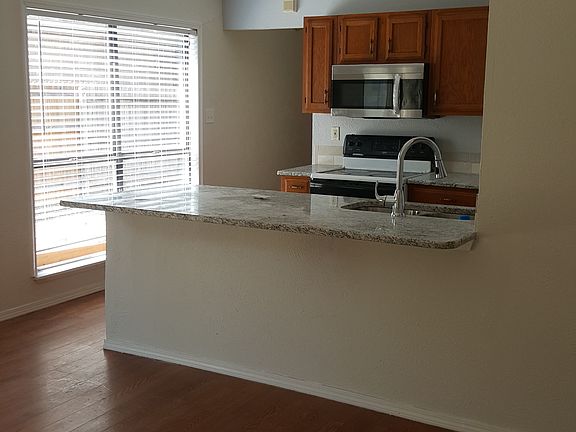 Back on Market; Cute 2 bedroom 1 bath half duplex; split bedrooms; living room has high ceilings which gives it a more spacious feeling; new SS dishwasher and built-in microwave; granite countertop in kitchen and bath; fresh interior and exterior paint; new roof in August 2019; bathroom has new shower wall tiles; laminate flooring for easy maintenance; big backyard; great first home or invest for your future!