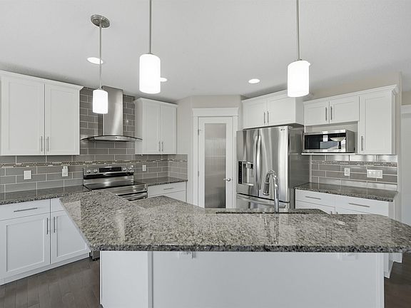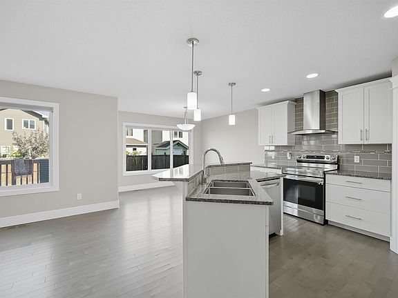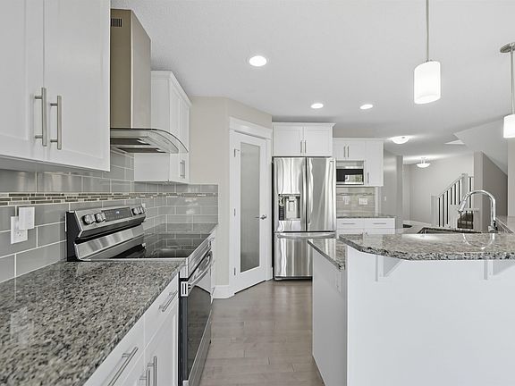 Thoughtfully designed with a flexible layout, ideal for single-family living or multi-generational lifestyles. Offering approx 2800sf of total living space on 3 levels. 3 living areas, 2 kitchens, 3 dining areas, 4 bedrooms & 4 bathrooms. Sunny South fronting, open layout features a cool toned neutral modern palette. Living room highlights a linear gas fireplace & views of private yard. Kitchen features white shaker profile cabinets, black granite, prep island & corner pantry. Spacious nook with direct access to deck. Upper level bonus room for family movie nights. Primary bedroom will house a king sized set & is complete with dual walk-in closets & 4pc ensuite. 2 additional bedrooms & 4pc bathroom for a growing family. Lower level offers an oversize recreation room which will accommodate most furniture arrangements. 2nd kitchen & 2nd dining area for inlaws, entertaining or extended guest stays. 4th bedroom & full bathroom complete this level. Steps to multiple parks/ponds & within catchment of 4 schools.