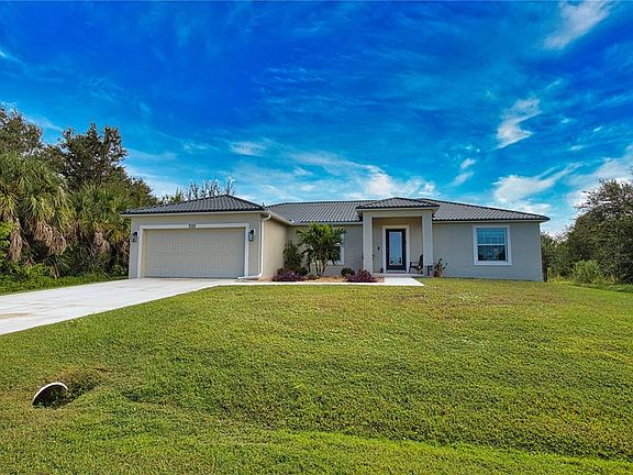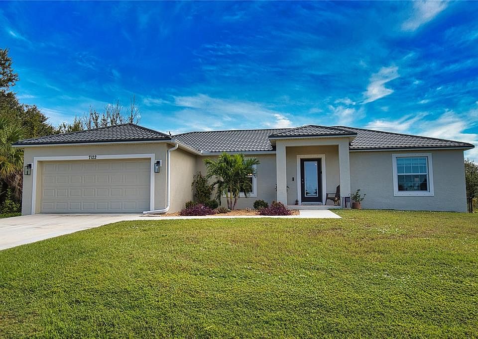 Welcome to this immaculate 3 year old, 3-bedroom, 2-bath Englewood home, perfectly positioned near Gulf beaches. This home sits in one of Englewood’s highest-elevation neighborhoods, therefore not in a flood zone offering peace of mind. Located in a quiet neighborhood, this residence combines modern comfort, elegant design, and exceptional convenience and not in an HOA. Step inside to an inviting open-concept layout featuring stylish plank tile flooring throughout, creating a seamless flow from room to room. The living space is bright and welcoming, ideal for relaxing evenings or entertaining family and friends. Enjoy a beautifully designed pool and oversized screened-in lanai, perfect for year-round outdoor living. Whether you’re hosting a barbecue or lounging poolside, this backyard oasis captures the essence of Florida living. Golf enthusiasts will appreciate being just under 10 minutes from the Rotonda Golf courses, while travel is made easy with quick access to 2 major nearby airports—Sarasota-Bradenton and Fort Myers. Not to mention 30 minutes to Punta Gorda and its own airport. Adding even more value, the home features a brand-new metal roof, offering durability, longevity, and peace of mind. Move-in ready and meticulously maintained, this Englewood gem blends style, convenience, and coastal charm. Don’t miss the opportunity to make this exceptional property your new home.