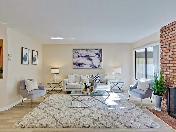 This stunning 3 bedrooms, 2.5 bathrooms townhouse situated in the perfect location in the complex. The front patio welcomes you and flows to the spacious, bright floorplan offers plenty of room for modern living, distance learning and working from home!. The elegant living and dining room features new flooring, new light fixture, floor to ceiling fireplace, wet bar with built-in cabinets, sliding door opens to the private back patio. Chef kitchen offers granite counter tops, abundance of storage cabinets and drawers, tile flooring and dining area with sliding door overlooking the exterior views. Large master suite features two closets, updated bathroom, dual sink, tiled shower enclosure. Well-proportioned secondary bedrooms, each with ample closet space. Attached two car garage, laundry and storage area. Outstanding amenities: gated community pool, green belt area, highly-rated Cupertino schools.