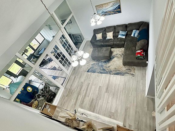 The spacious family room showcases high ceilings, creating an airy, inviting atmosphere ideal for gatherings. The primary suite is located upstairs along with two other bedrooms, while a fourth bedroom is conveniently located on the main level.