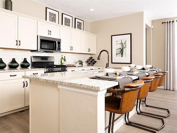 MLS#7002810 REPRESENTATIVE PHOTOS ADDED! April Completion - Welcome to this charming ranch-style home boasting an expansive kitchen with an oversized island, a walk-in pantry, and a large gathering room with an optional cozy fireplace adjacent to the casual dining area. Enjoy the Colorado sunshine with extensive outdoor living spaces, and comfortably work from home in a private flex area. This home offers ample living space for those seeking single-level living, along with a walk-out basement for additional space. Structural options added include: 42" modern fireplace in family room, 8' doors, covered outdoor living 2, walk-out basement and built-in appliance package.