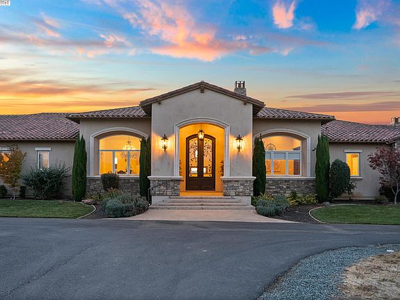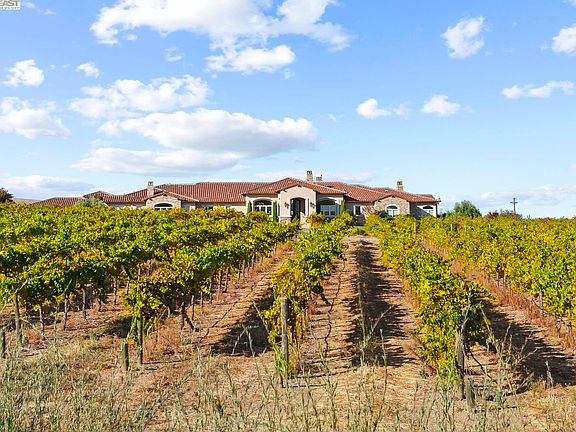 Exquisite Vineyard Estate with Unparalleled Luxury and Views! Welcome to a truly remarkable estate home, an oasis of sophistication and tranquility in the wine country heart of Livermore. This one-story vineyard property is a testament to refined living, boasting over 8,600 sqft of meticulously crafted living space, with attention to detail evident in every corner, nestled on an expansive 17 acre lot, 15 of which grow exquisite Chardonnay grapes. Enjoy the breathtaking view of the Tri-Valley Conservancy from nearly every elegant angle, such as the large tasting room with attached barbeque area, perfect for gatherings, or the expansive backyard, featuring multiple fire pits, over 12,00 sqft of oversized pavers, and bocce ball court. Relax in the luxurious spa bathtub framed by the picturesque view of the rolling vines. Step into the gourmet kitchen, a haven for culinary enthusiasts with top-tier appliances and expansive counter space. An attached yet secluded in-law unit, with a separate entrance, provides additional accommodation options and a 9-car garage makes parking and storage a breeze. Cedar Mountain offers the perfect fusion of seclusion and sophistication. Embrace a lifestyle where luxury meets nature, and every moment is a celebration of the good things in life.