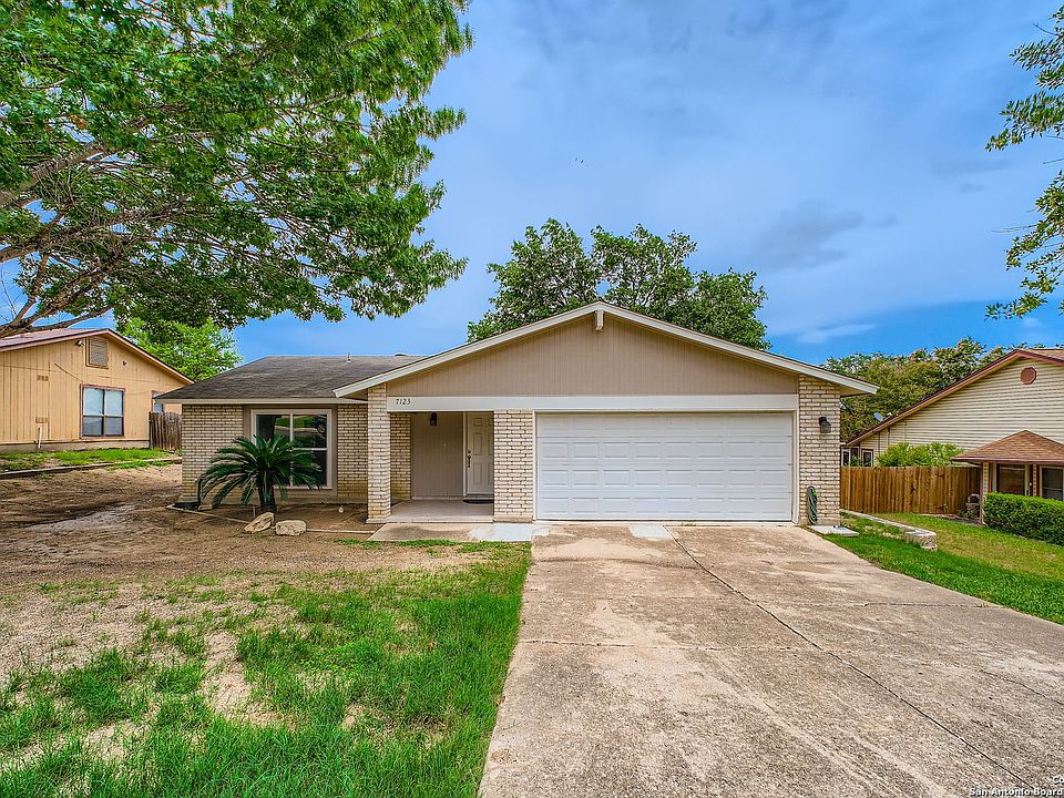 Welcome to this spacious home located in a secluded and quiet neighborhood close to Randolph AFB. Inside you'll find freshly painted walls, new energy efficient windows and new laminate flooring throughout. The home offers two livings areas with the family room flowing seamlessly into the kitchen which features new cabinet doors, a new range and quartz composite counters with a beautiful travertine backsplash. Step outside to enjoy a large covered patio--perfect for entertaining--and a almost-new storage shed. The finished garage includes an attractive epoxy floor, offering both functionality and style.