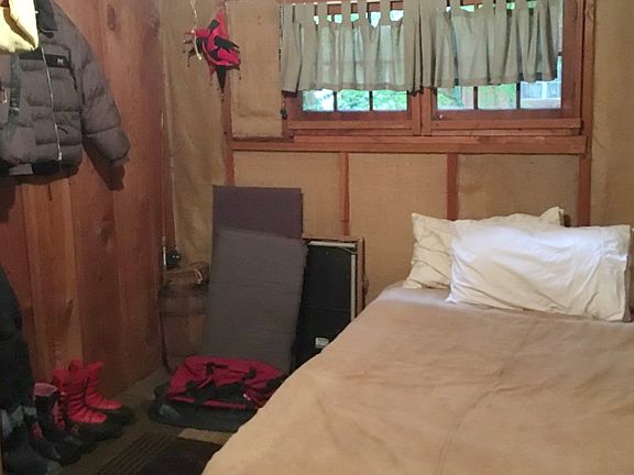Cute cabin in the woods! Great for being close to skiing resorts. Has running water but no bath, does have out house. This a little cutie and will go fast.