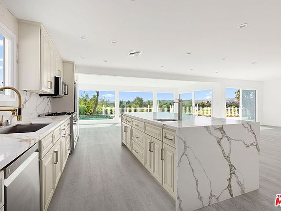 Welcome to this beautifully remodeled single-story residence tucked away on a private cul-de-sac, offering sweeping city light and mountain views. Situated on an expansive 35,000+ sq ft lot, the property features a sparkling flagstone pool and spa, with spacious patio areas for outdoor dining and entertaining. Inside, the home boasts 4 bedrooms with newer flooring and 3 updated bathrooms. The living room features recessed lighting and tile floors, while the formal dining room captures breathtaking views. The kitchen showcases whitewashed cabinetry and tile accents, with seamless flow to the outdoor spaces. Located in the sought-after El Camino Real Charter, Hale, and Pomelo Charter school district, this exceptional home offers comfort, style, and convenience, all within close proximity to parks, shops, and dining. Don't miss the chance to lease this West Hills gem!