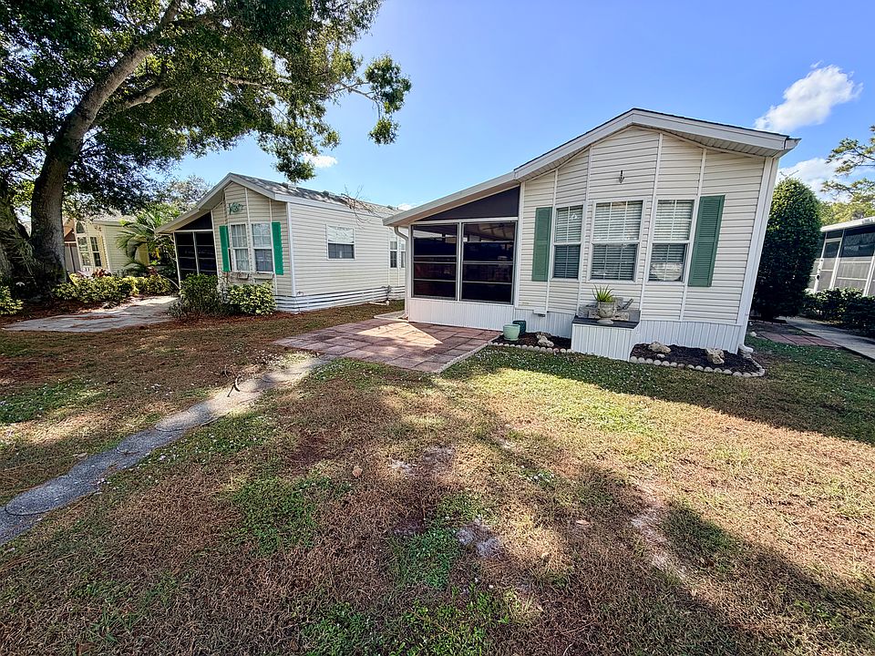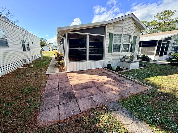 This centrally located 1-bedroom, 1-bath mobile home features new flooring, walk in shower, white appliances, and a durable hard lanai roof. The front of the home includes an accordion door that opens to a versatile space perfect for guests or a home office. The lanai features beautiful tile flooring and opens to a cozy yard space perfect for relaxing or entertaining. Stop by and view this property today.