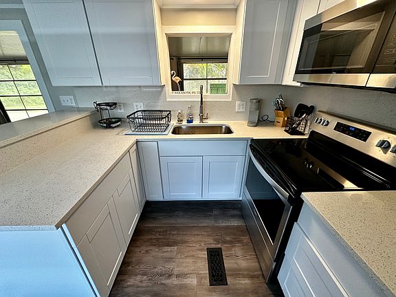 Beautifully Renovated 2 Bedroom, 1.5 Bath Home for SaleThis stylishly updated home offers modern comfort and functionality, featuring stainless steel appliances, brand new white kitchen cabinets, sleek quartz countertops, and a convenient bar top perfect for casual dining or entertaining. The open-concept layout connects the kitchen to a spacious living area and a raised lanai, creating a bright and inviting living space.The primary bedroom includes easy access to the full bathroom, while the second bedroom is enhanced with its own private half bath ideal for guests or shared living. Additional upgrades include all-new interior doors and flooring throughout, plus a separate laundry room for added convenience. Step outside to enjoy a ground-level patio, perfect for relaxing or entertaining outdoors.