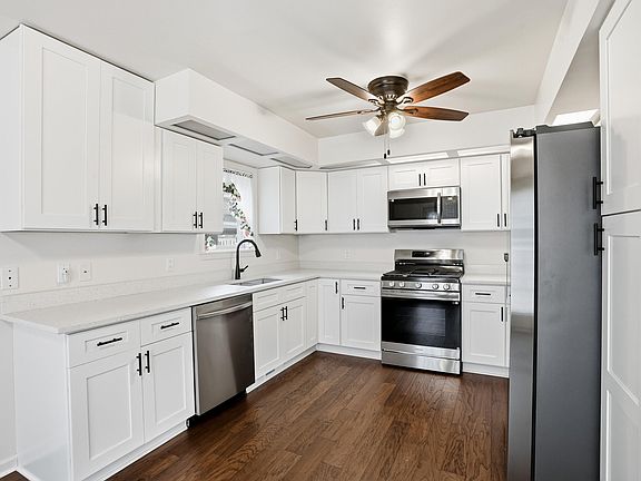 Modern finishesNewly decked rear deckQuartz countertopsBrand-new kitchenStainless steel appliancesNewer carpetWood laminate flooring