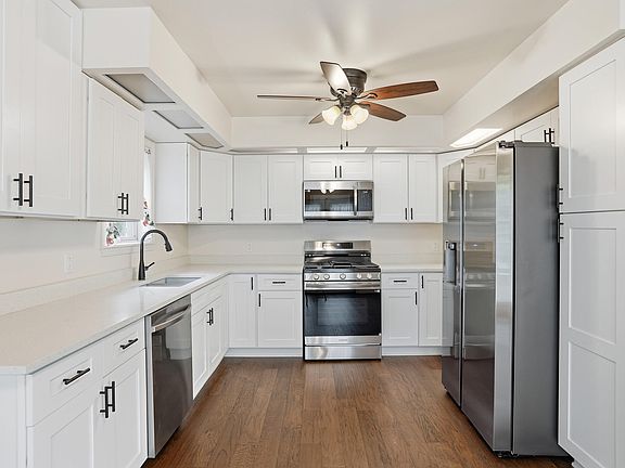 Welcome home to this beautifully renovated 4-bedroom, 2-bath residence that truly checks every box. Step inside to find a brand-new kitchen featuring quartz countertops, stainless steel appliances, and stylish modern finishes. Both bathrooms have been completely updated with today's most sought-after designs. The home offers spacious living areas with newer carpet and wood laminate flooring throughout, creating a warm and inviting atmosphere. Enjoy outdoor living on the newly decked rear deck overlooking the large 1/2-acre lot--perfect for entertaining or relaxing in your private backyard retreat. Additional highlights include a new furnace and air conditioner (2022), newer roof, and an attached 2.5-car garage with both front and rear garage doors for added convenience. Washer and dryer are included, making this home truly move-in ready. Don't miss this opportunity to own a stunning, turn-key property with modern updates and abundant space--schedule your private showing today!