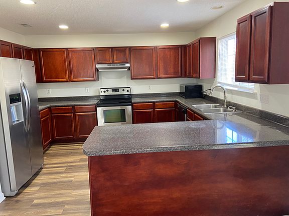 Stylish two story home in the Brighton Subdivision 3 bedrooms, 2.5 baths, Approx 1,700 square feet Spacious home with gorgeous kitchen! Cherry stained cabinets, updated appliances, plenty of cabinet and counter space BRAND NEW FLOORING THROUGHOUT Large family room with electric fireplace Huge master suite with fabulous walk in closet, spacious bedrooms! Fenced in backyard Convenient location-close access to 540, 440, eateries, shopping, and more! Rents for $1975 Available early to mid February