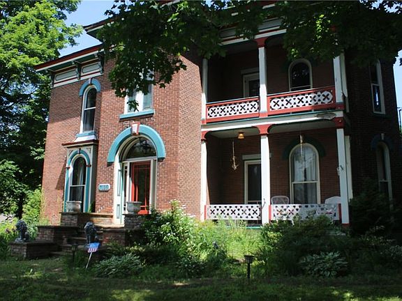 Here is a piece of history. Large brick home built in the 1800's. Kitchen, Parlor, Bedroom on main floor and 4/5 others on the second level. The solid woodwork throughout is original, as well as the grand staircase upon entry of the home, All wood floors, Pantry off kitchen and a little breakfast nook. Balcony off 2nd floor bedroom. Dining room and living room fixtures were originally gas converted to electric. New roof, This home still has original feel, the plaster curved walls, push button light switches, so much character. Maids quarters with bath and closet on second floor with private access from kitchen. Full walkout basement. Third story is accessible and rooftop for exceptional views. Too much here to list, Must see. Five + acres with 2 story barn, and 2 bedroom cottage on the property for the caretaker.
