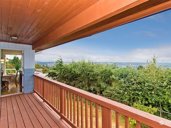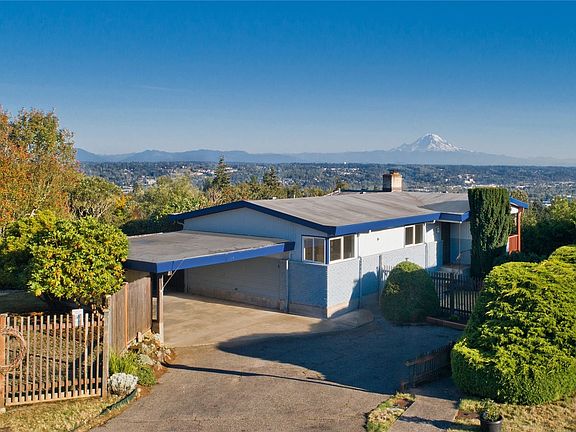 AMAZING VIEW...Better in person! This Charming one-story home with a walk-out basement is nestled at the end of a cul-de-sac. Beautiful city and mountain views. 4 BDRMS, 2.5 BTHS. Step inside to a warm & welcoming living room featuring a large window that perfectly frames the stunning Mt Rainier view. Cozy wrap-around fireplace w/a stylish wood backdrop. The dining room leads to a covered deck. Partially finished basement presents incredible potential, with a new electric panel, new wiring, new lighting, a large storage room, a bedroom, and a half bath. Potential to expand your living space or for multi-generational living. Fresh interior/exterior paint, solid hardwood floors. New water heater. Large fenced lot Great location for commuting.