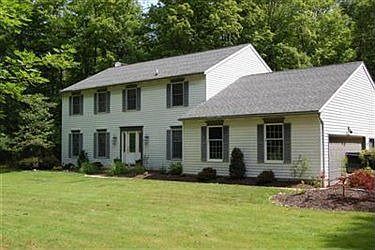 This classic center hall colonial is nestled on a heavily treed 2.5 acre lot with a stream running through it. A custom built home w/ 4 bedrooms & 2.5 baths, this home has been recently updated. The foyer is highlighted w/hardwd flrs & decorative crown molding & is flanked by a large living rm w/hardwood floors & built-in bookcases. The dining rm also features hardwood flrs. There is a flr to ceiling brick fp in the fam rm which has wood flrs & wet bar. The kit has oak cabinets w/corian counters & ceramic tile flrs & the informal dining area has direct access to the porch & deck which overlooks the backyard. Completing the first flr is a half bath, laundry rm & office. The spacious master suite features a double closet & updated bathrm. There are 3 other generously sized bedrms which share a hall bath. Please see attached list of improvements which include a Trane High Efficiency Furnace & A/C, new roof & gutters, & new hardwood flrs in all first floor rms & upstairs hallway.