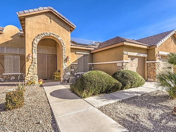 This gorgeous single story home boast over 2,700 sqft! It features an open floor plan with a formal living room and formal dining room along with a full kitchen and family room with a fireplace all visible upon entry. Primary bedroom is very spacious with a large bathroom and walk in closet. The backyard is complete with desert landscaping and patio. Conveniently located close to 215 this is the ideal property to call home. Solar installed on the home to boost savings with your electricity!