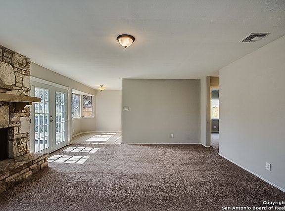 This San Antonio one-story offers a fireplace, stainless steel appliances, a deck, and a two-car garage. Upgraded features include new carpet, fresh interior paint in select rooms, and exterior paint. Home comes with a 30-day buyback guarantee. Terms and conditions apply.