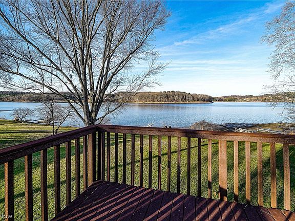 7127 Elgin Dr SW, Sherrodsville Ohio 44675 is a beautiful lake front home w/ gorgeous setting on Southeast side of Atwood Lake of the Muskingum Watershed District. Large parcel of leased land at the end of a dead-end road at start of The Pines has direct access to the lake from the property, as well as its own boat dock w/ 2 boat slips. Awesome home w/ great lake views from both levels has up to 5 bedrooms, 2.5 bathrooms, 3 car garage & plenty of storage. Walk out lower level has stunning views of the lake & includes the Family Room / Recreation Room w/ woodburning fireplace, bar area, full bathroom w/ shower, plus Laundry Room & Utility room w/ workshop. Sliding glass doors open to ground level concrete patio & direct access to the lake. Main floor includes huge living room w/ open concept to the Dining Area & offers calming views of the water from all the windows & opens into the retro, clean & bright kitchen! Wrap around deck on 3 sides allows for extended outdoor living areas to en