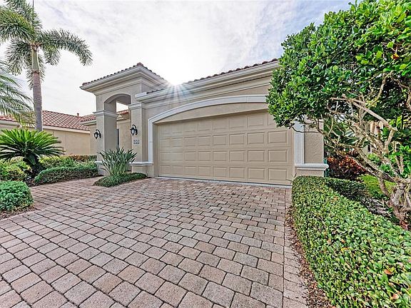 Welcome to this beautifully appointed, maintenance free villa in the desirable gated community of the Palisades at Palmer Ranch. Thoughtfully designed and meticulously maintained, this residence offers a spacious great room layout enhanced by soaring ceilings, crown molding, arched architectural details, and a soft, neutral color palette throughout. French doors lead to the screened lanai where peaceful lake views create the perfect backdrop for morning coffee or evening relaxation. The light-filled kitchen features a charming bay-window breakfast nook, abundant cabinetry, Corian countertops, a natural gas range, double sink, newer appliances, and a generous pantry. The split floor plan ensures comfort and privacy, with the primary suite offering direct lanai access, dual walk-in closets, a relaxing corner tub, separate shower, water closet, and an extended vanity with double sinks. Two additional bedrooms and a full bath provide flexible space for guests, a home office, or hobbies. Additional conveniences include a full laundry room, a two-car garage, and paver walkways and driveway. This home is located within an intimate community of just 43 residences, known for its Mediterranean inspired architecture, quiet atmosphere, and picturesque lake views. Residents enjoy access to the community pool, pavilion, and outdoor kitchen area ideal for gatherings or quiet afternoons by the water. Perfectly situated near TPC Prestancia, the Legacy Trail, Gulf Gate Library, Sarasota Sports Club, shopping, dining, and the world renowned Siesta Key Beach, this villa offers a comfortable and convenient lifestyle in one of Sarasota's most sought after areas. The lease includes HOA-provided lawn care. Tenants will be responsible for electric, water/sewer, and natural gas services. All utilities will remain in the owner's name, and the owner will provide the tenant with the monthly utility bills for reimbursement.